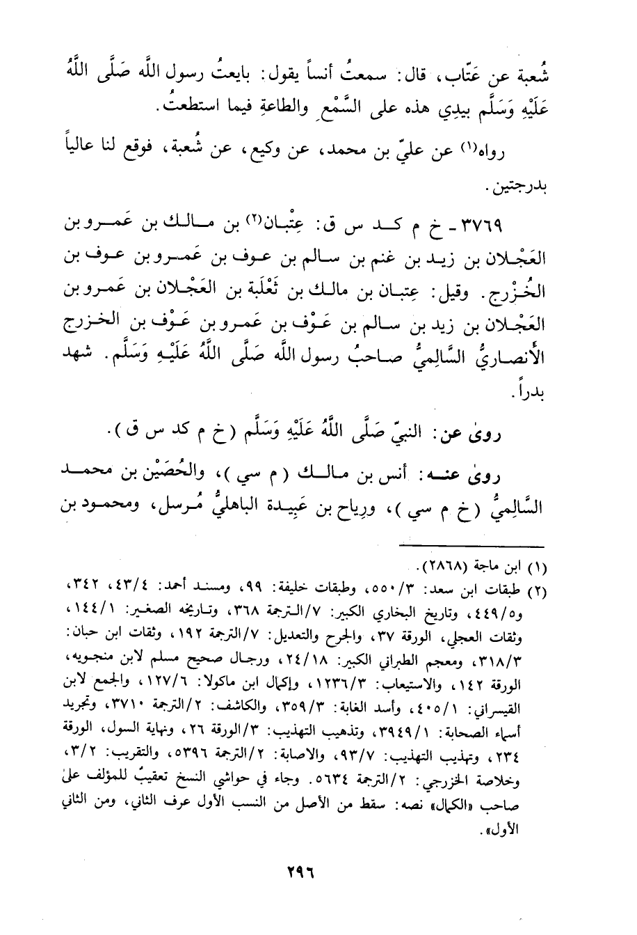 3769 - خ م كد س ق: عتبان بن مالك بن عَمْرو بن العجلان بْن زَيْد بْن غنم بن سالم بن عوف بن عَمْرو بن عوف بن الخزرج (2) .