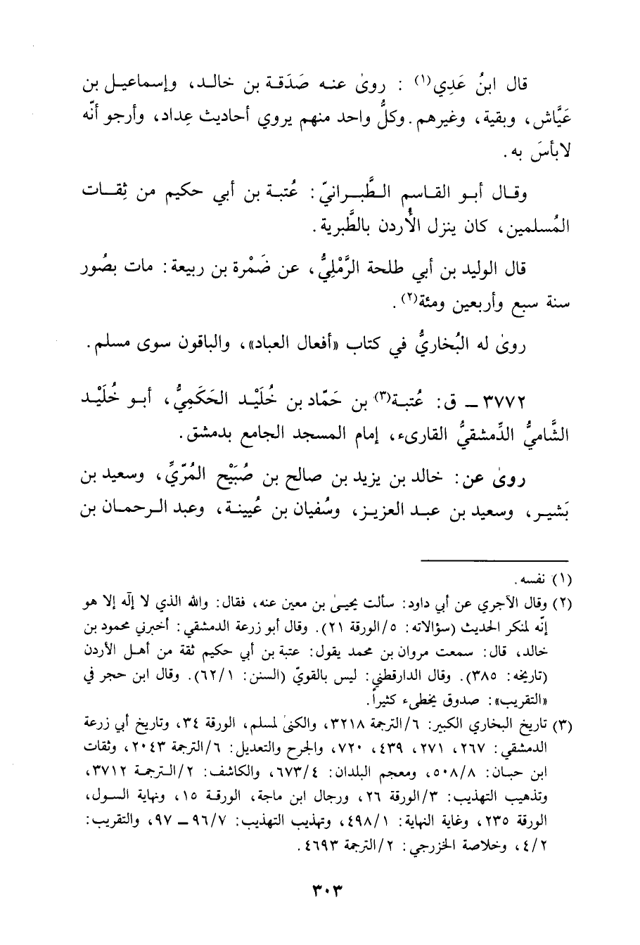 3772 - ق: عتبة بن حماد بن خليد الحجمي (3) ، أَبُو خليد الشامي الدمشقي القارئ، إمام الْمَسْجِد الجامع بدمشق.