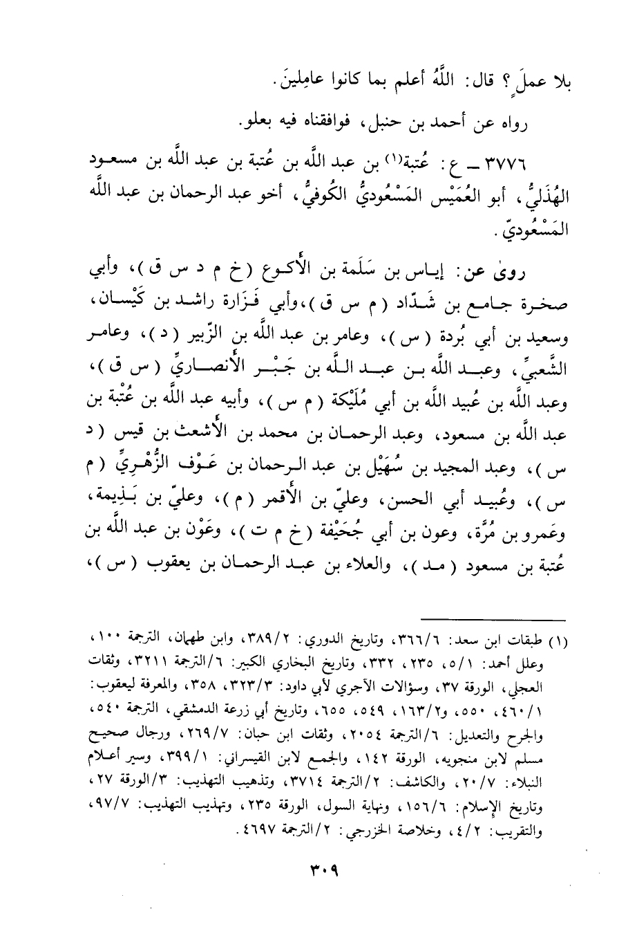 3776 - ع: عتبة بن عَبد الله بْن عتبة بْن عَبد اللَّهِ بن مَسْعُود الهذلي (1) ، أَبُو العميس المسعودي الكوفي، أَخُو عَبْد الرَّحْمَنِ بْن عَبد اللَّهِ المسعودي.