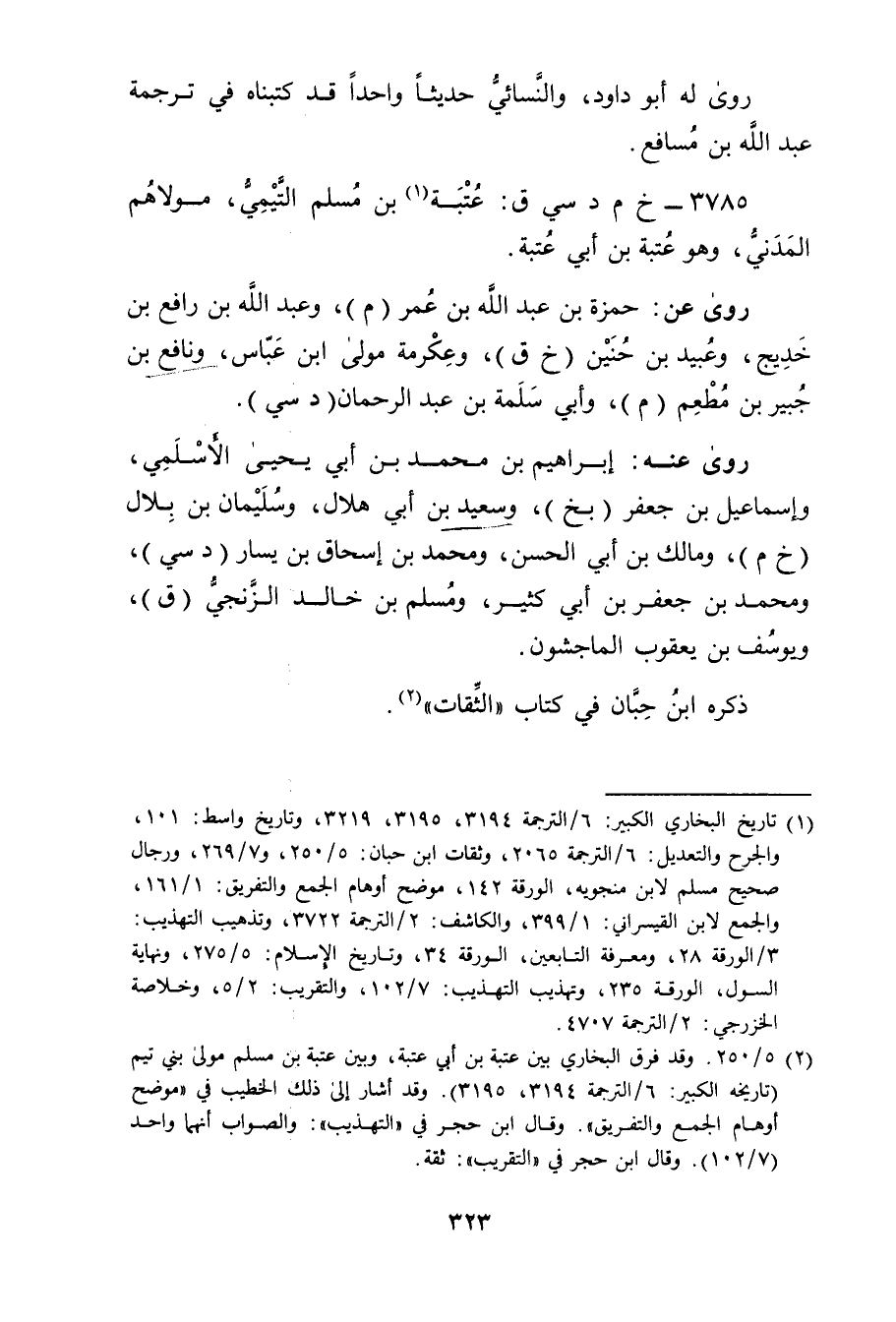 (2) 5 / 250. وقد فرق البخاري بين عتبة بن أَبي عتبة، وبين عتبة بن مسلم مولى بني تيم (تاريخه الكبير: 6 / الترجمة 3194، 3195) . وقد أشار إلى ذلك الخطيب في "موضح أوهام الجمع والتفريق". وَقَال ابن حجر في "التهذيب": والصواب أنهما واحد (7 / 102) . وَقَال ابن حجر في "التقريب": ثقة.
