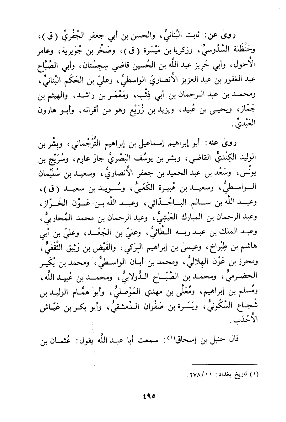قال حنبل بْن إسحاق (1) : سمعت أَبَا عَبد الله يقول: عثمان بْن
