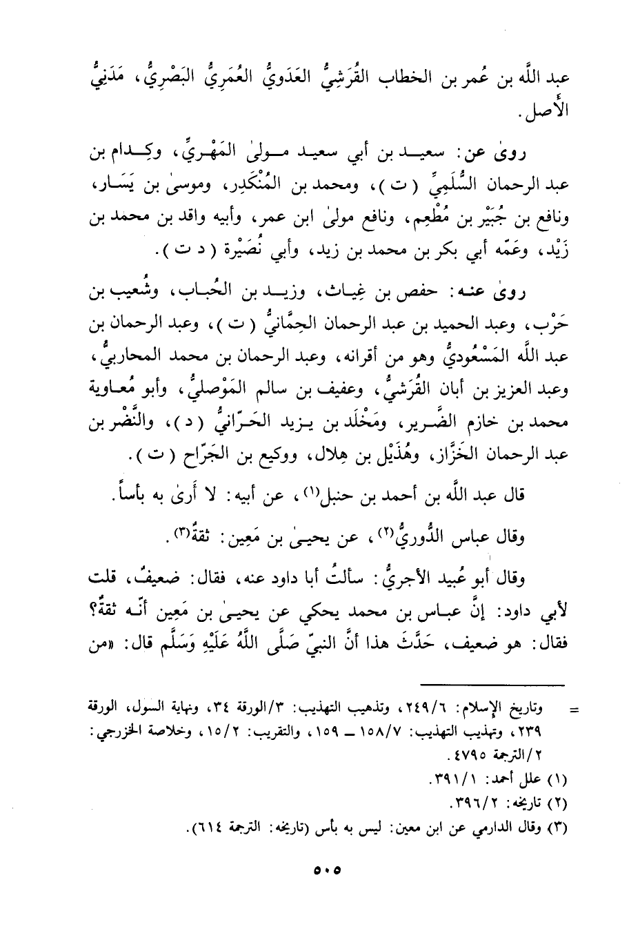 = وتاريخ الاسلام: 6 / 249، وتذهيب التهذيب: 3 / الورقة 34، ونهاية السول، الورقة 239، وتهذيب التهذيب: 7 / 158 - 159، والتقريب: 2 / 15، وخلاصة الخزرجي: 2 / الترجمة 4795.