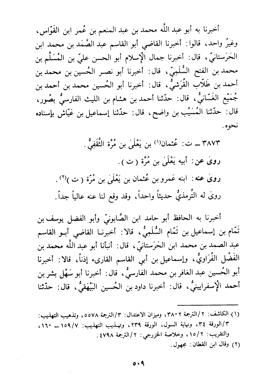 3873 - ت: عُثْمَان بن يَعْلَى بن مرة الثقفي (1) .