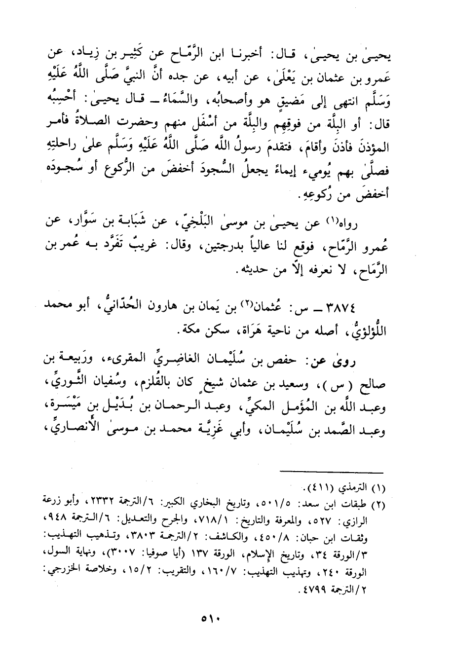 3874 - س: عُثْمَان بن يمان بن هَارُون الحداني (2) ، أَبُو محمد اللؤلؤي، أصله من ناحية هراة، سكن مَكَّة.