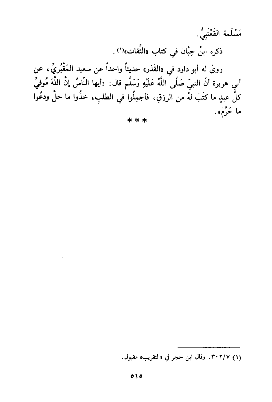 (1) 7 / 302. وَقَال ابن حجر في "التقريب"مقبول.