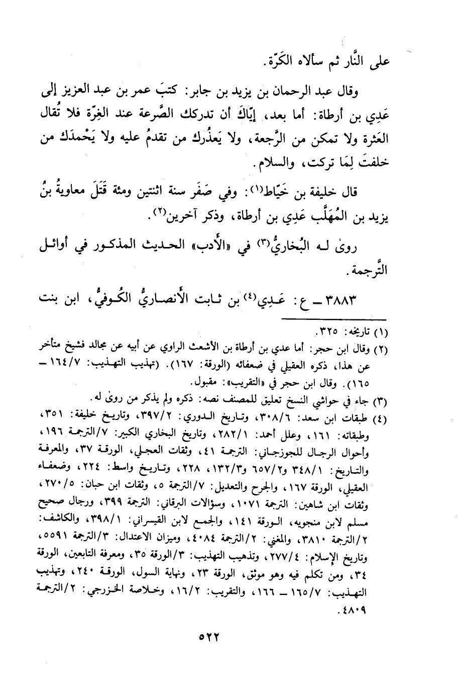 3883 - ع: عدي بن ثابت الأَنْصارِيّ الكوفي (4) ، ابن بنت
