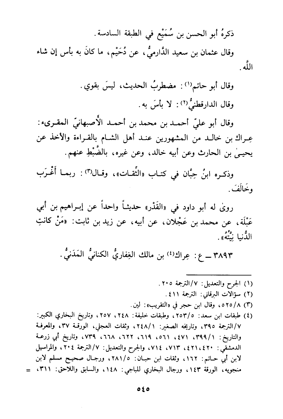 3893 - ع: عراك بن مالك الغفاري الكناني المدني (4) .