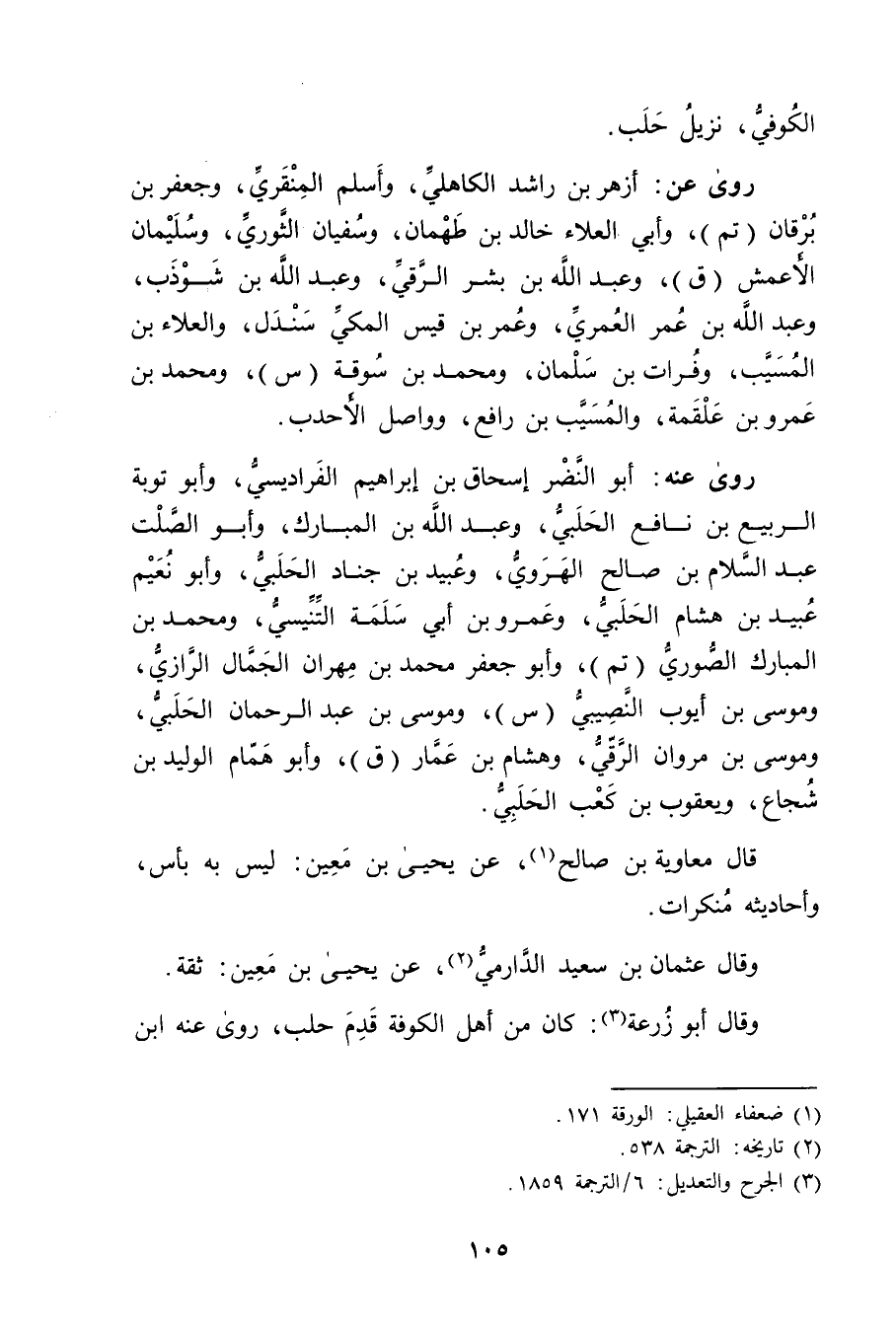 وَقَال أبو زُرْعَة (3) : كان من أهل الكوفة قدم حلب، روى عنه ابن