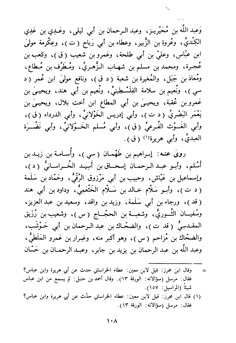 = وَقَال ابن محرز: قيل لابن مَعِين: عطاء الخراساني حدث عَن أبي هُرَيْرة وابن عباس؟ فقال: مرسل (سؤالاته: الورقة 13) . وَقَال أَحْمَد بْن حَنْبَلٍ: لم يسمع من ابن عباس شيئا (المراسيل: 157) .