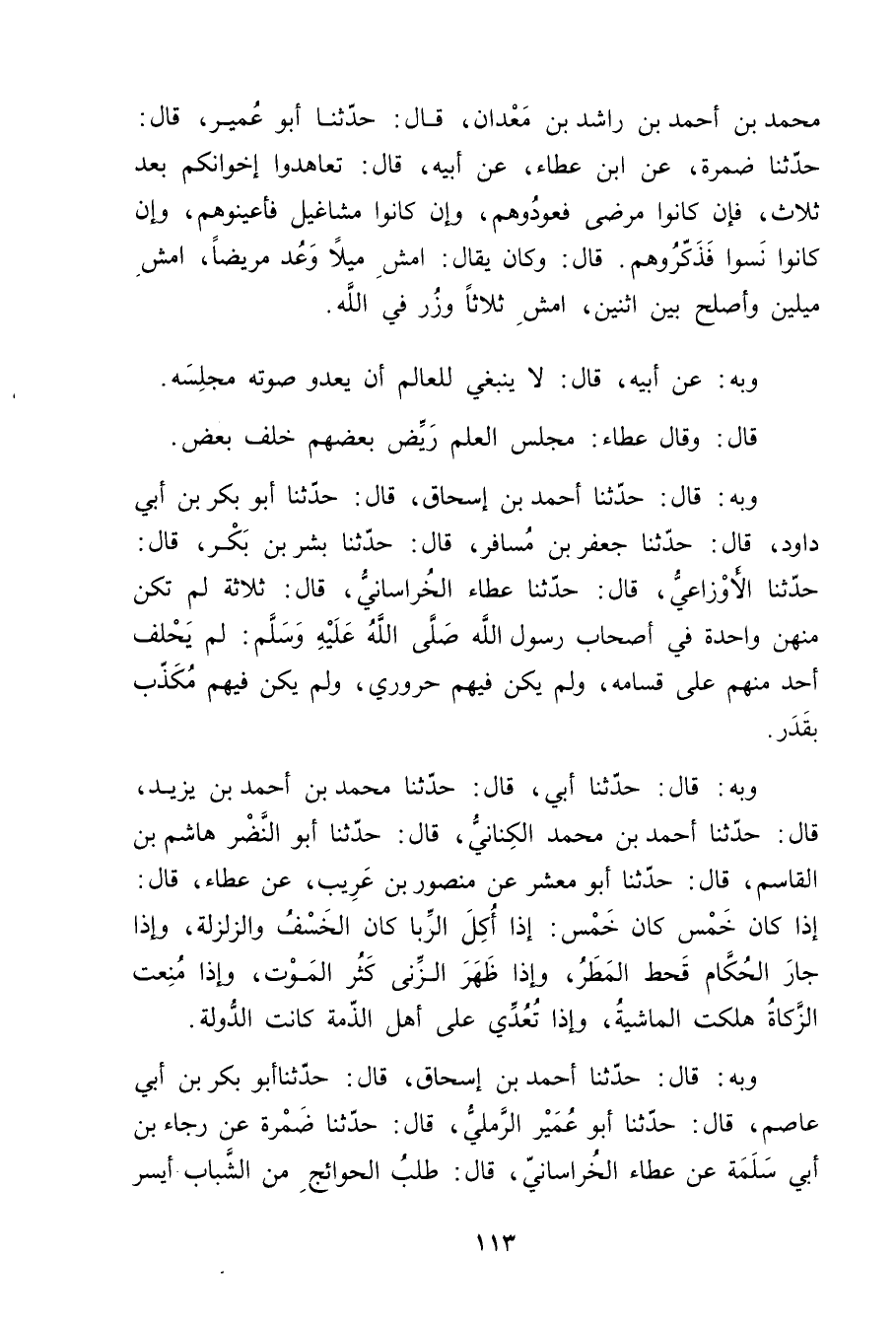 مُحَمَّد بْن أَحْمَد بْن راشد بن معدان، قال: حَدَّثَنَا أبو عُمَير، قال: حَدَّثَنَا ضمرة، عن ابن عطاء، عَن أبيه، قال: تعاهدوا إخوانكم بعد ثلاث، فإن كانوا مرضى فعودوهم، وإن كانوا مشاغيل فأعينوهم، وإن كانوا نسوا فذكروهم. قال: وكان يقال: امش ميلا وعد مريضا، امش ميلين وأصلح بين اثنين، امش ثلاثا وزر في الله.