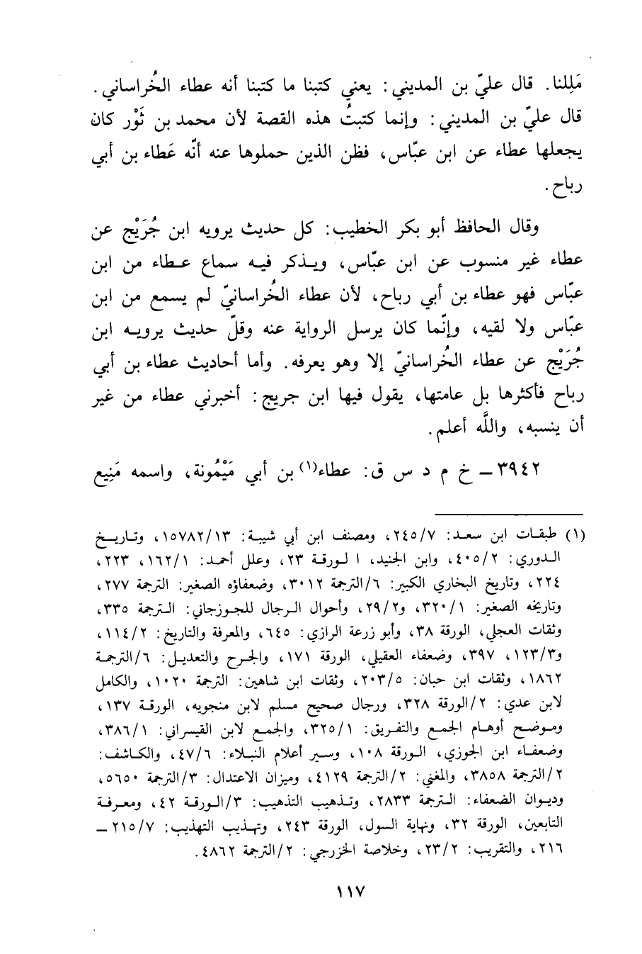 3942 - خ م د س ق: عطاء بن أَبي ميمونة (1) ، واسمه منيع
