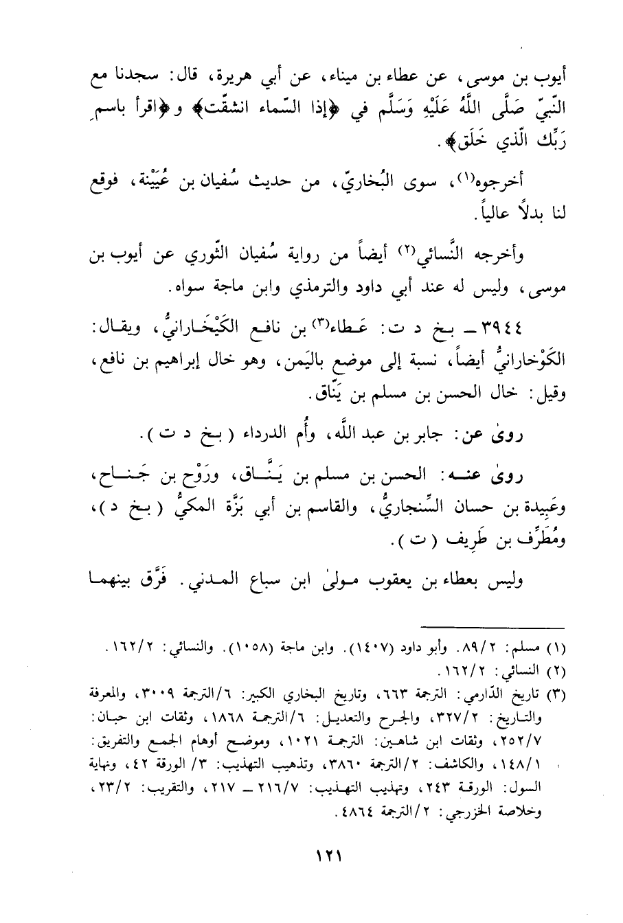3944 - بخ د ت: عطاء بن نافع الكيخاراني (3) ، ويُقال: الكوخاراني أيضا، نسبة إلى موضع باليمن، وهو خال إبراهيم بن نافع، وقيل: خال الحسن بن مسلم بن يناق.