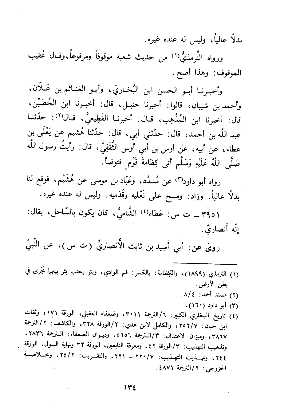 رَوَاهُ أَبُو دَاوُدَ (3) عَنْ مُسَدَّدٍ، وعَبَّادُ بْنُ مُوسَى عَنْ هُشَيْمٍ، فَوَقَعَ لَنَا بَدَلا عَالِيًا. وزَادَ: ومَسَحَ عَلَى نَعْلَيْهِ وقَدَمَيْهِ. ولَيْسَ لَهُ عِنْدَهُ غَيْرُهُ.