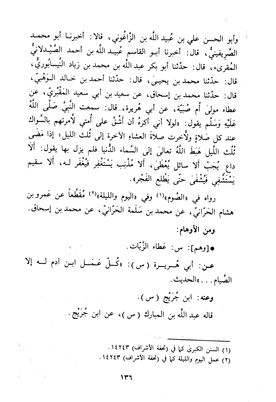 (1) السنن الكبرى كما في (تحفة الاشراف) 14243.