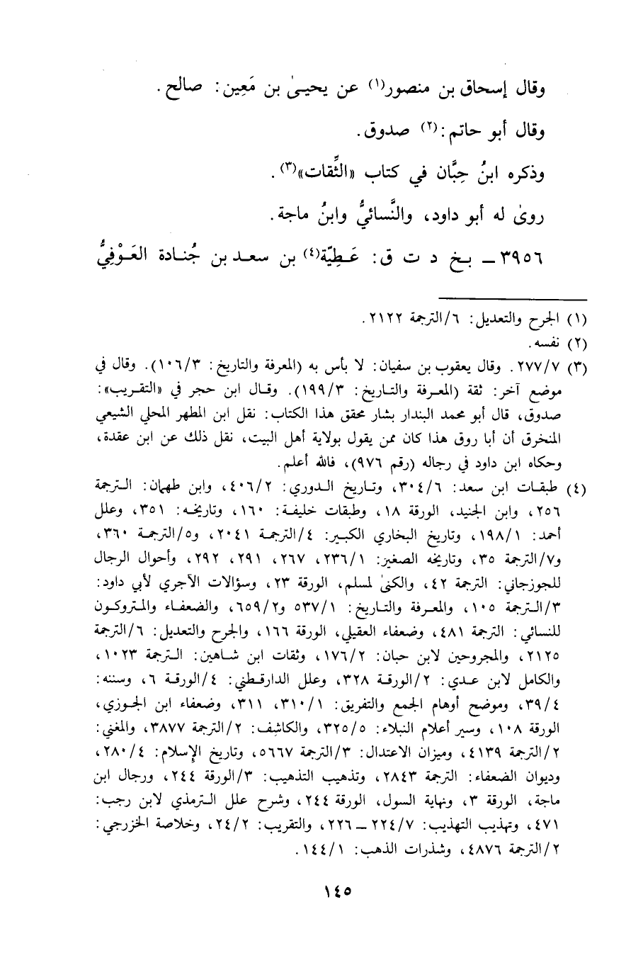3956 - بخ د ت ق: عطية بن سعد بن جنادة العوفي (4)