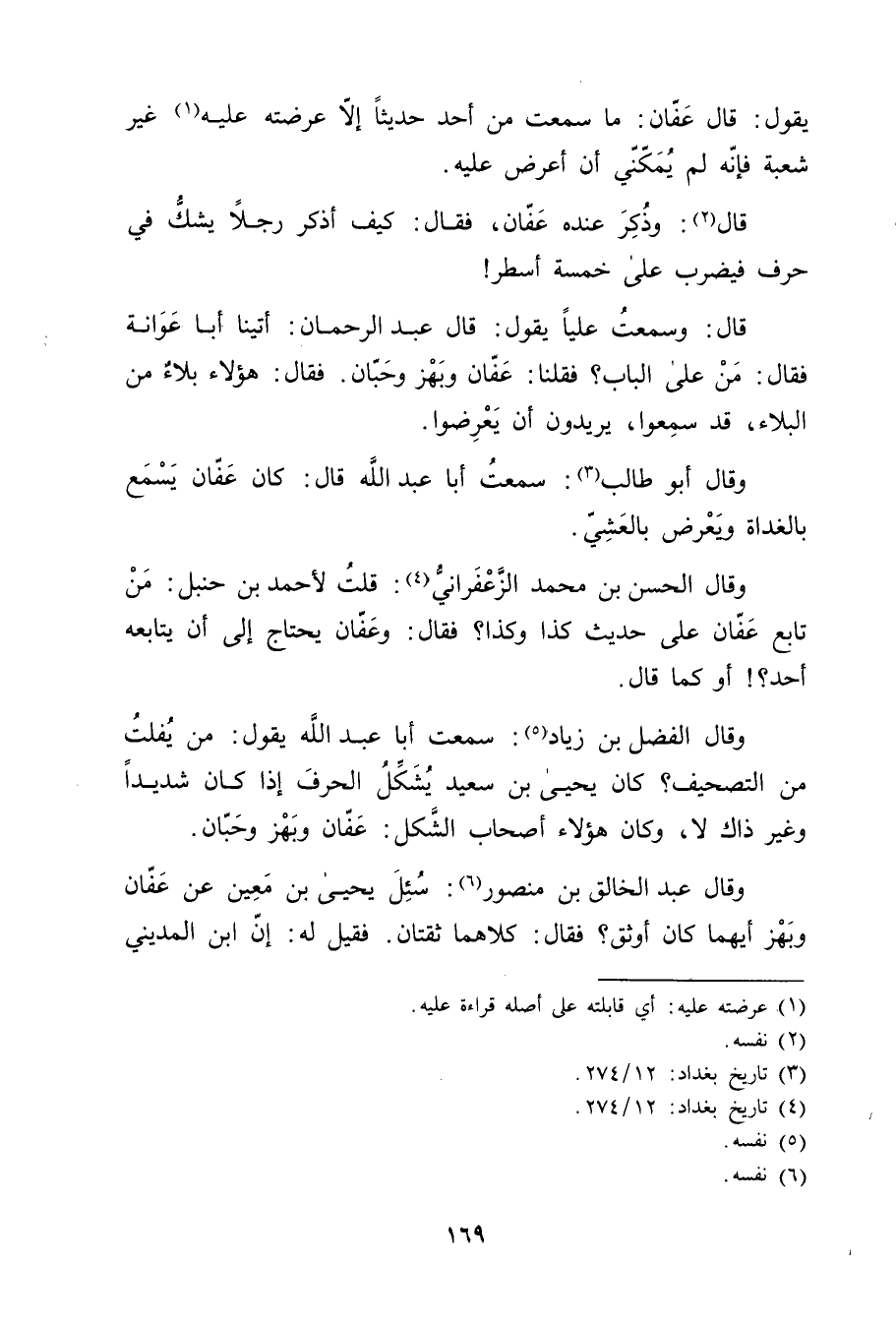 وَقَال أبو طالب (3) : سمعت أبا عَبْد اللَّهِ قال: كان عفان يسمع بالغداة ويعرض بالعشي.