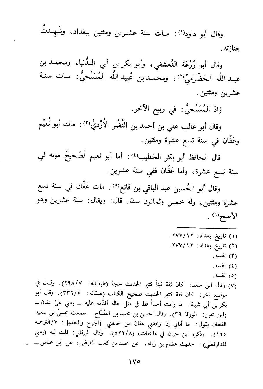 وَقَال أَبُو الحسين عبد الباقي بْن قانع (5) : مات عفان في سنة تسع عشرة ومئتين، وله خمس وثمانون سنة. قال: ويُقال: سنة عشرين وهو الأصح (6) .