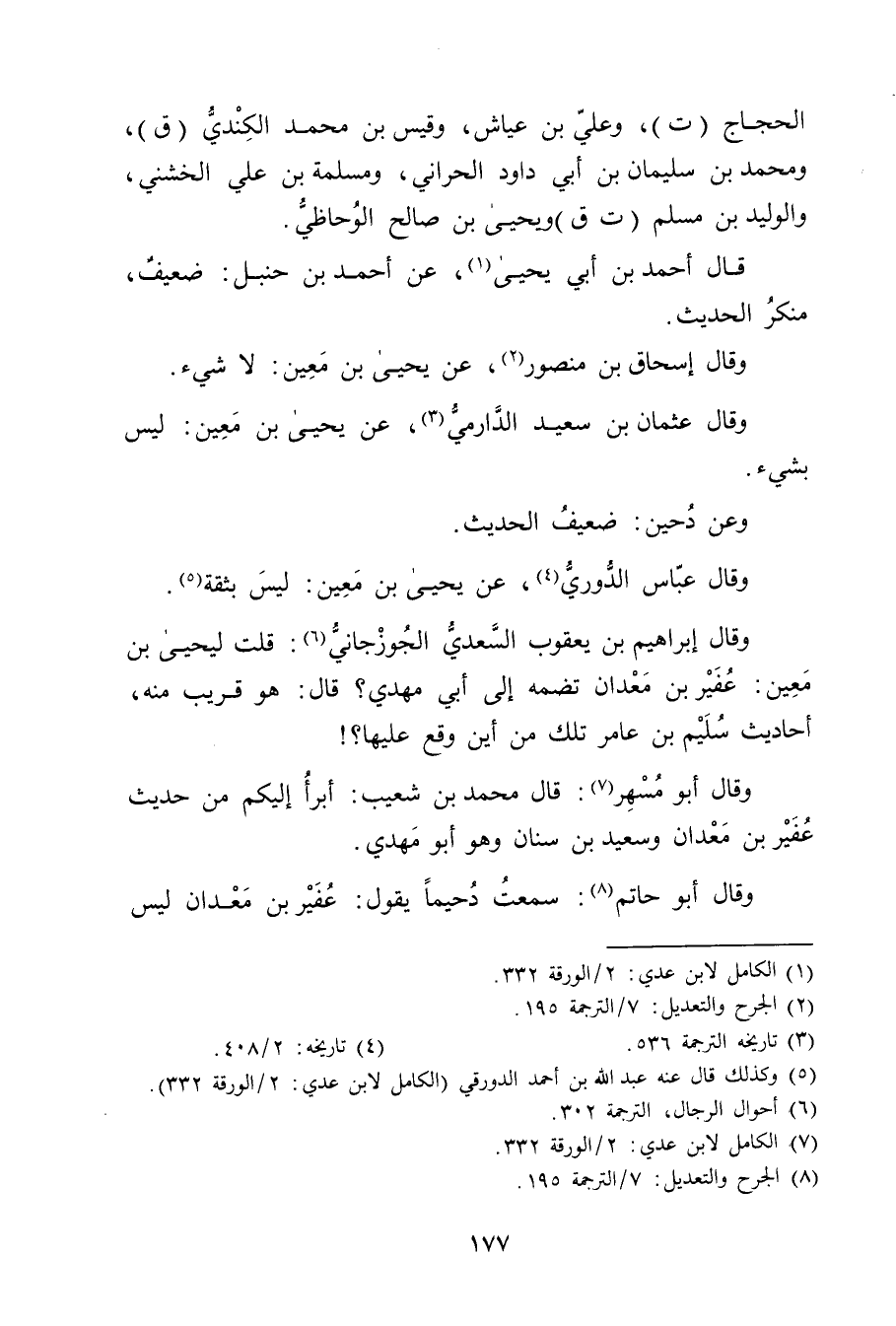وَقَال أبو حاتم (8) : سمعت دحيما يقول: عفير بن معدان ليس
