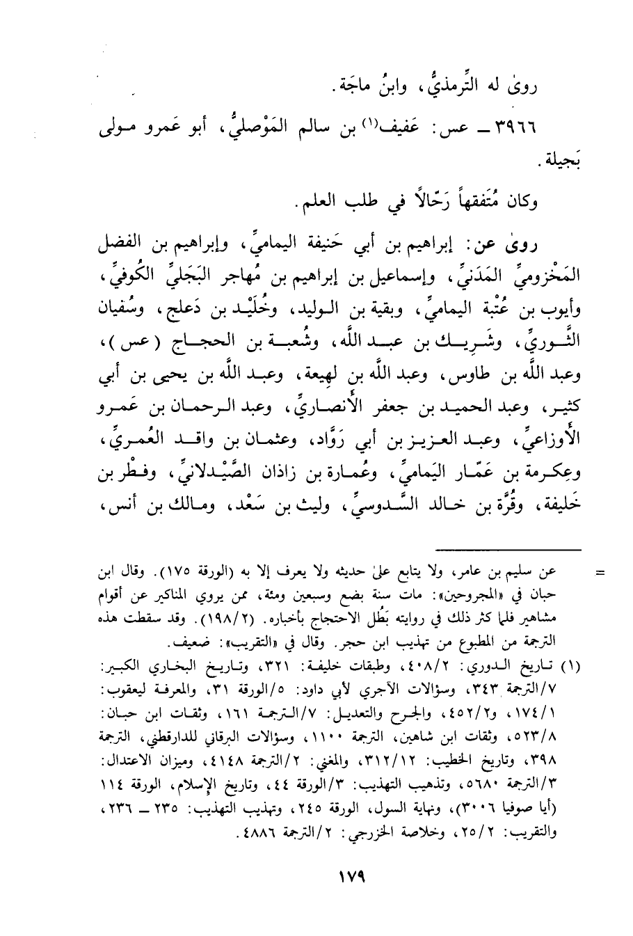 3966 - عس: عفيف بن سالم الموصلي (1) ، أبو عَمْرو مولى بجيلة.