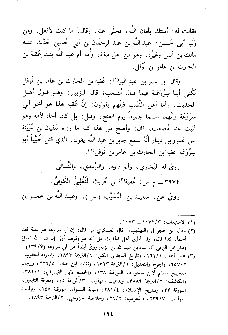 (2) وَقَال ابن حجر في "التهذيب": قال العسكري من قال: إن أبا سروعة هو عقبة فقد أخطأ. كذا قال، وقد أطبق أهل الحديث على أنه هو وقولهم أولى إن شاء الله تعالى وذكر ابن البرقي أن عَبَّادِ بْنِ عَبْدِ اللَّهِ بْنِ الزبير روى أيضا عَن أبي سروعة (7 / 239) .