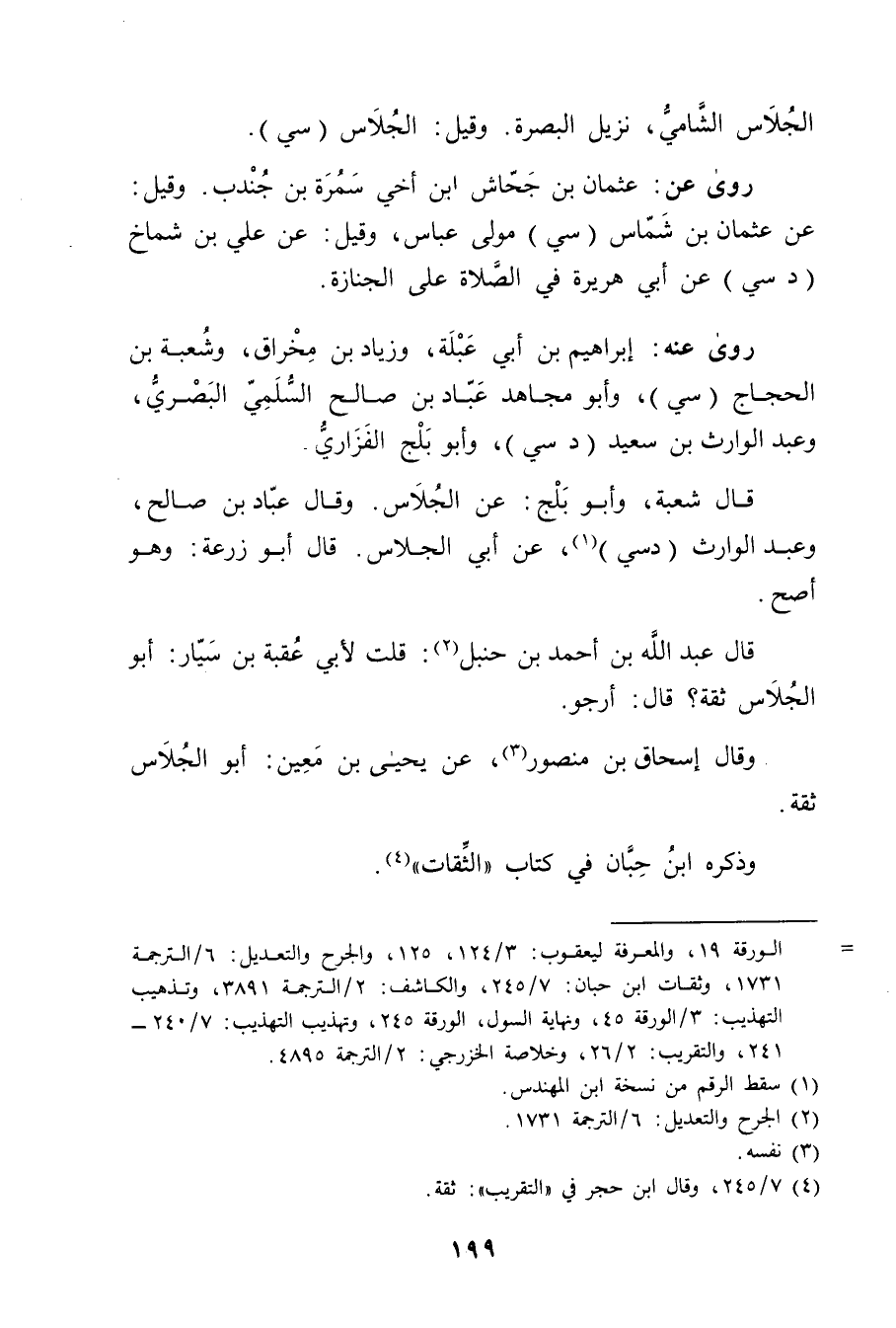 1731، وثقات ابن حبان: 7 / 245، والكاشف: 2 / الترجمة 3891، وتذهيب التهذيب: 3 / الورقة 45، ونهاية السول، الورقة 245، وتهذيب التهذيب: 7 / 240 - 241، والتقريب: 2 / 26، وخلاصة الخزرجي: 2 / الترجمة 4895.