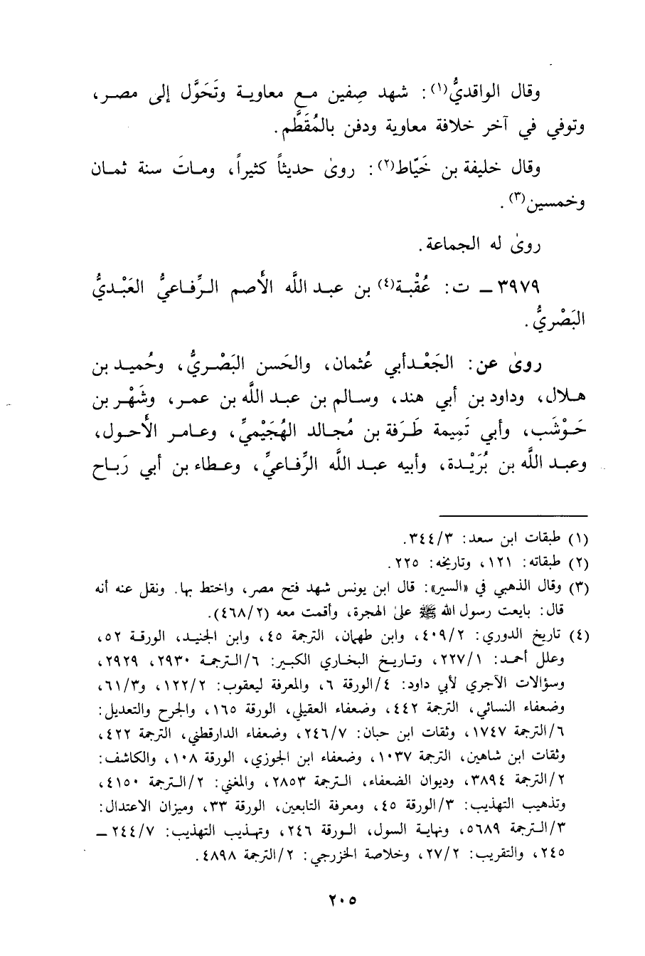 3979 - ت: عقبة بن عبد الله الأصم الرفاعي العبدي البَصْرِيّ (4) .
