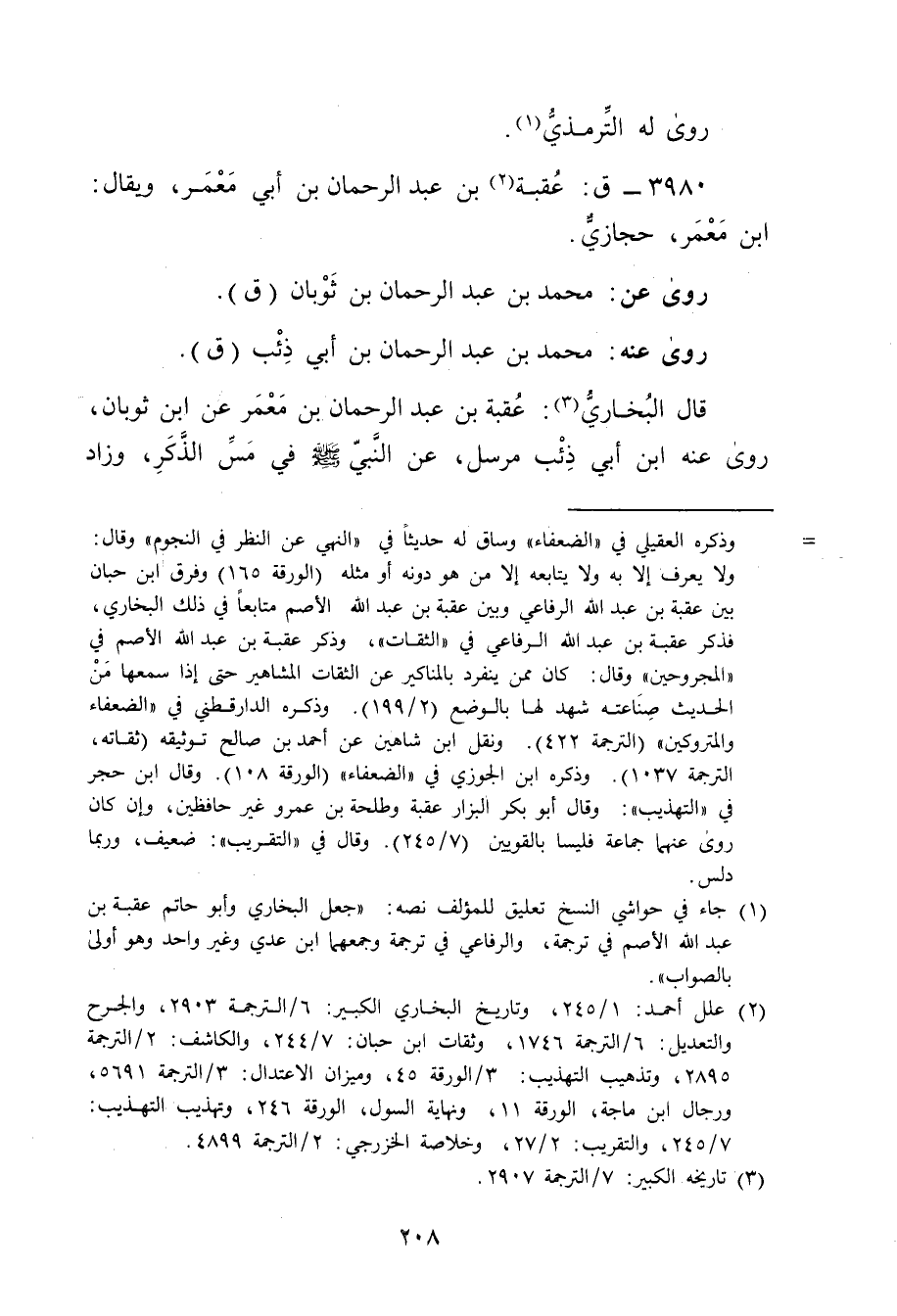 (1) جاء في حواشي النسخ تعليق للمؤلف نصه: جعل البخاري وأبو حاتم عقبة بن عبد الله الأصم في ترجمة، والرفاعي في ترجمة وجمعهما ابن عدي وغير واحد وهو أولى بالصواب.