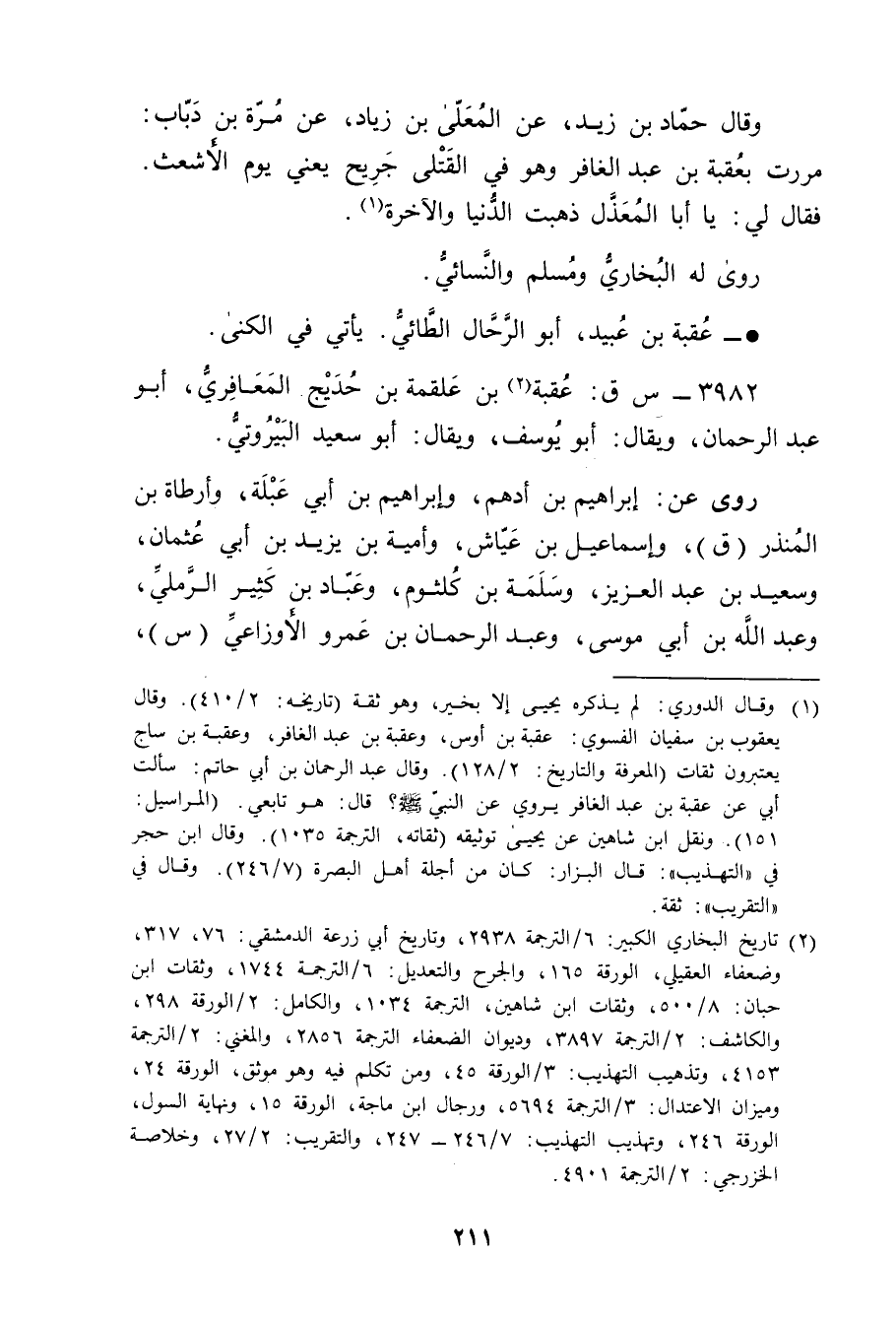 3982 - س ق: عقبة بن علقمة بن حديج المعافري (2) ، أبو عَبْد الرحمن، ويُقال: أبو يوسف، ويُقال: أبو سَعِيد البيروتي.