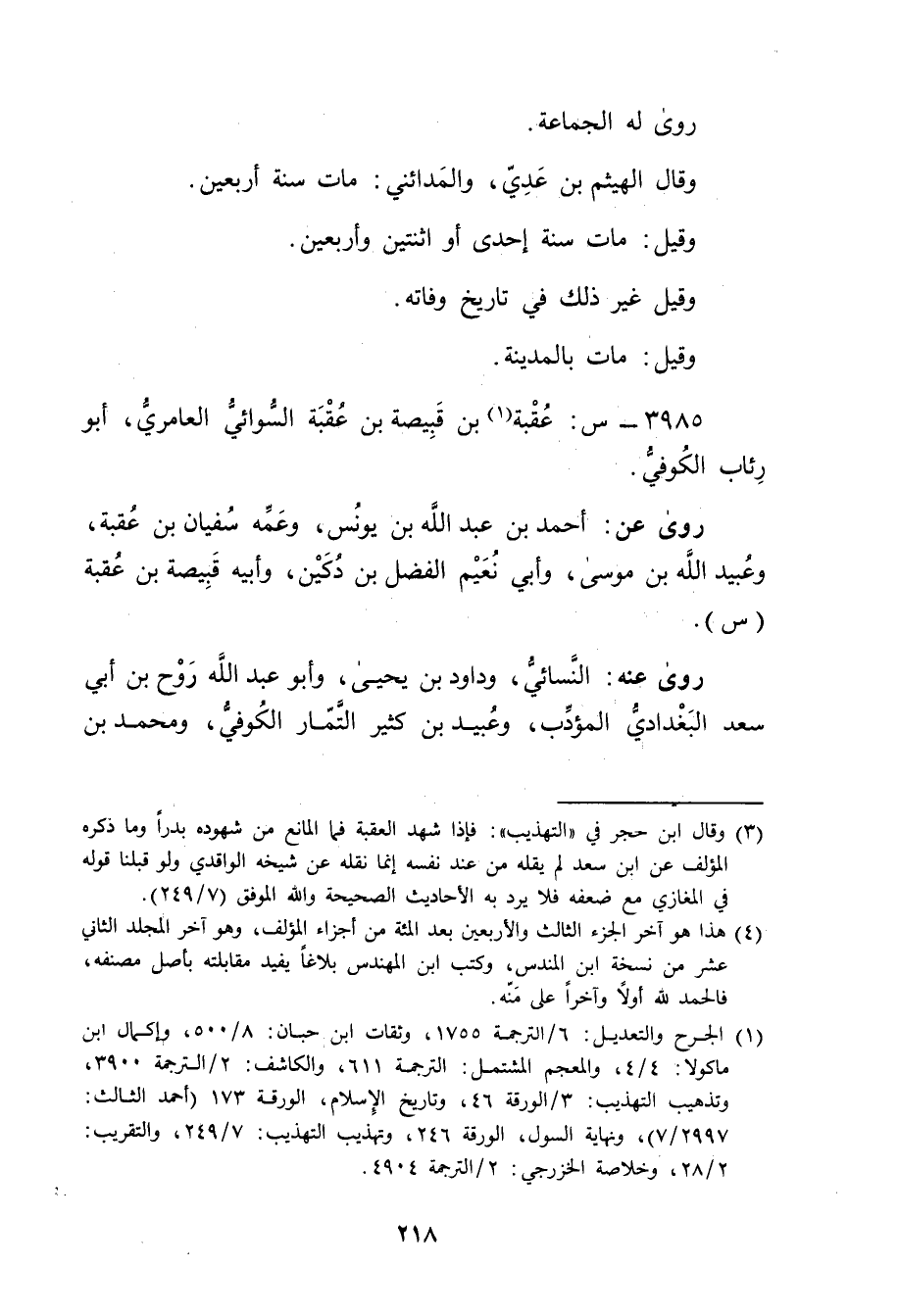 3985 - س: عقبة بن قبيصة بن عقبة السوائي العامري (1) ، أبو رئاب الكوفي.
