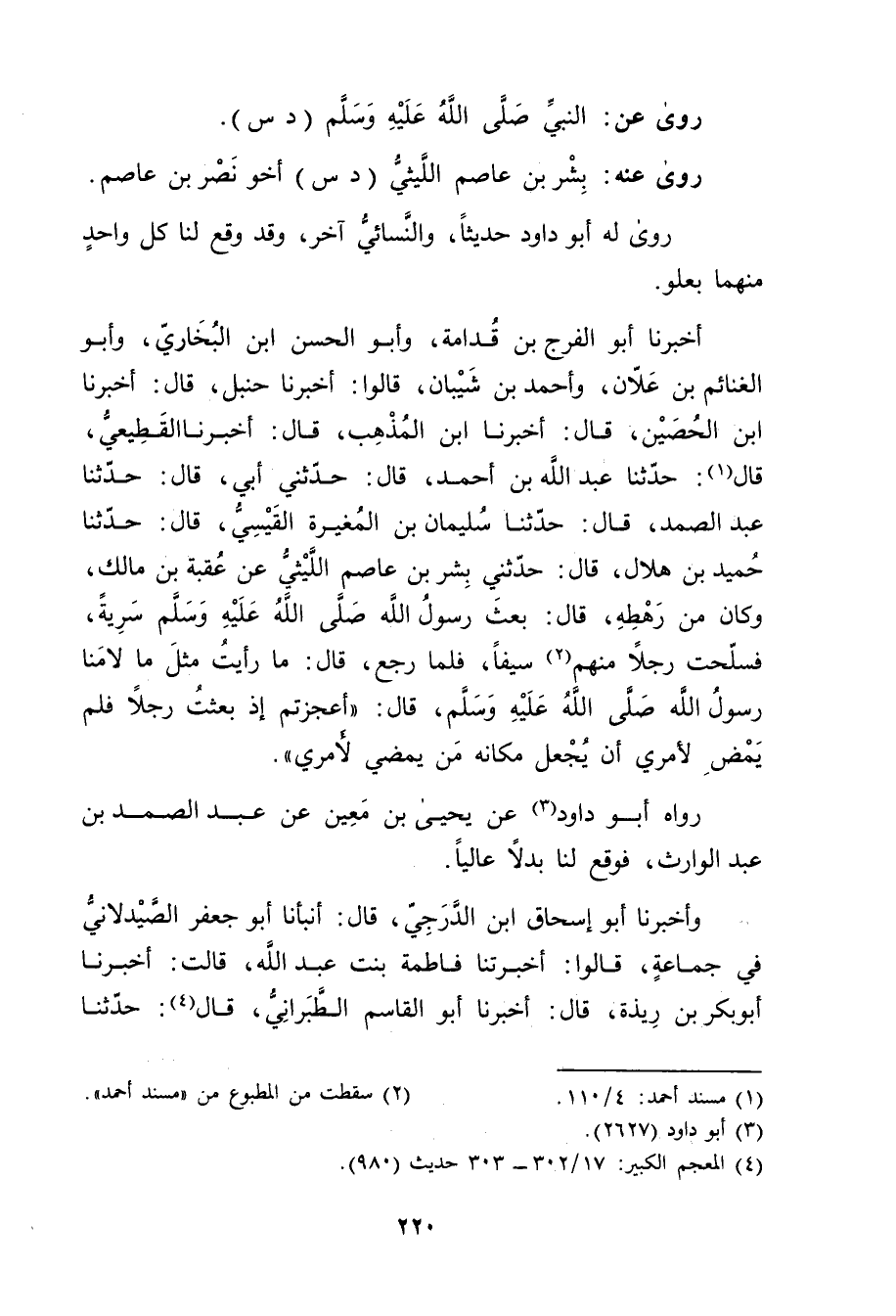 (4) المعجم الكبير: 17 / 302 - 303 حديث (980) .