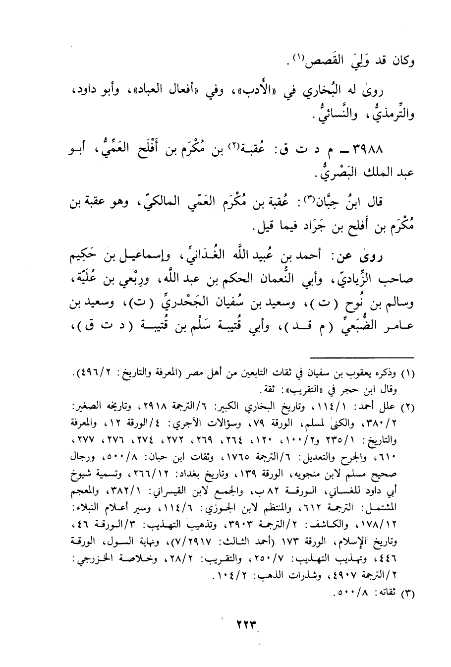 3988 - م د ت ق: عقبة بن مكرم بن أفلح العمي (2) ، أبو عبد الملك البَصْرِيّ.