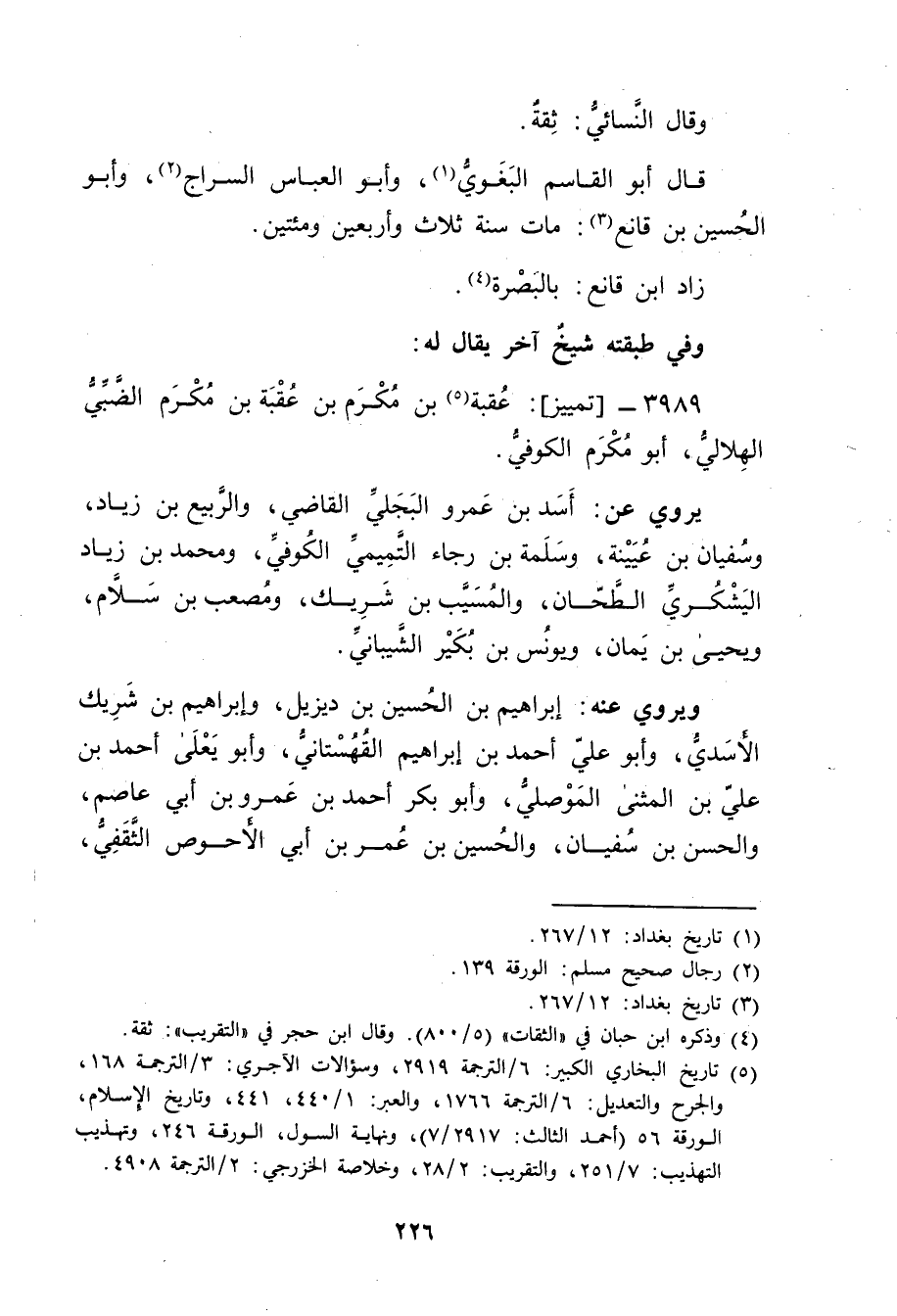 3989 - تمييز: عقبة بن مكرم بن عقبة بن مكرم الضبي الهلالي (5) ، أبو مكرم الكوفي.