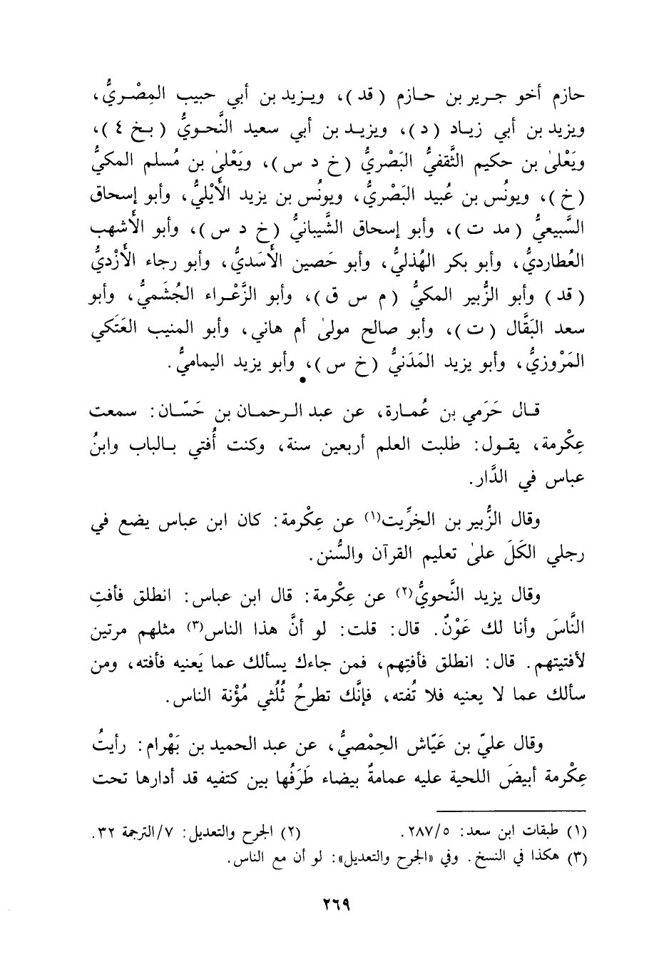 قال حرمي بن عمارة، عن عبد الرحمن بن حسان: سمعت عكرمة، يقول: طلبت العلم أربعين سنة، وكنت أفتي بالباب وابن عباس في الدار.