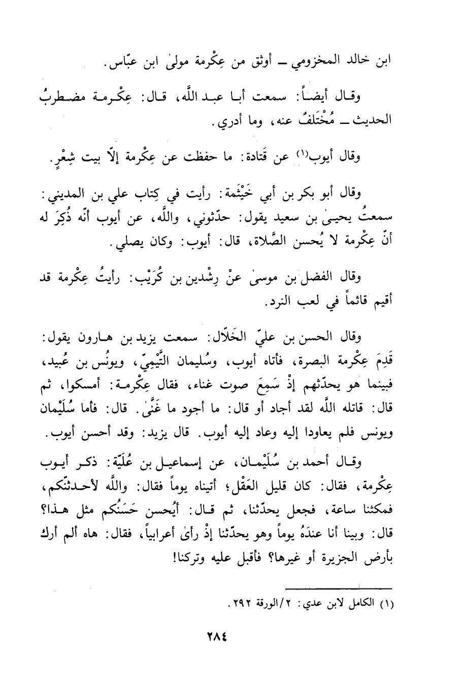 (1) الكامل لابن عدي: 2 / الورقة 292.