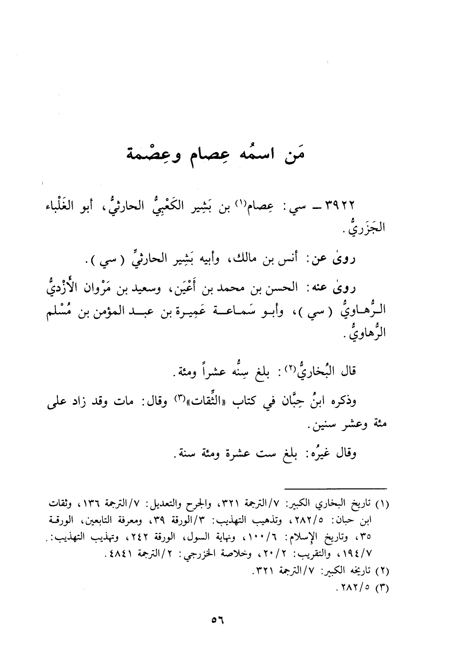 3922 - سي: عصام بن بشير الكعبي الحارثي (1) ، أبو الغلباء الجزري.