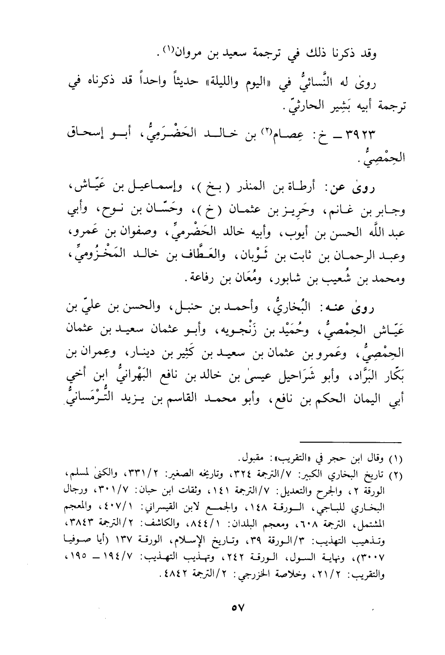 (2) تاريخ البخاري الكبير: 7 / الترجمة 324، وتاريخه الصغير: 2 / 331، والكنى لمسلم، الورقة 2، والجرح والتعديل: 7 / الترجمة 141، وثقات ابن حبان: 7 / 301، ورجال البخاري للباجي، الورقة 148، والجمع لابن القيسراني: 1 / 407، والمعجم المشتمل، الترجمة 608، ومعجم البلدان: 1 / 844، والكاشف: 2 / الترجمة 3843، وتذهيب التهذيب: 3 / الورقة 39، تاريخ الاسلام، الورقة 137 (أيا صوفيا 3007) ، ونهاية السول، الورقة 242، وتهذيب التهذيب: 7 / 194 - 195، والتقريب: 2 / 21، وخلاصة الخزرجي 2 / الترجمة 4842.