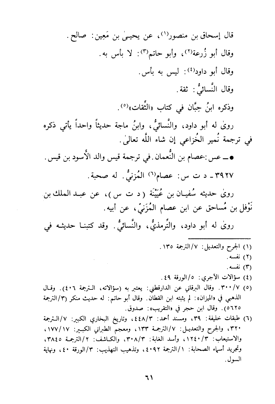 (1) الجرح والتعديل: 7 / الترجمة 135.