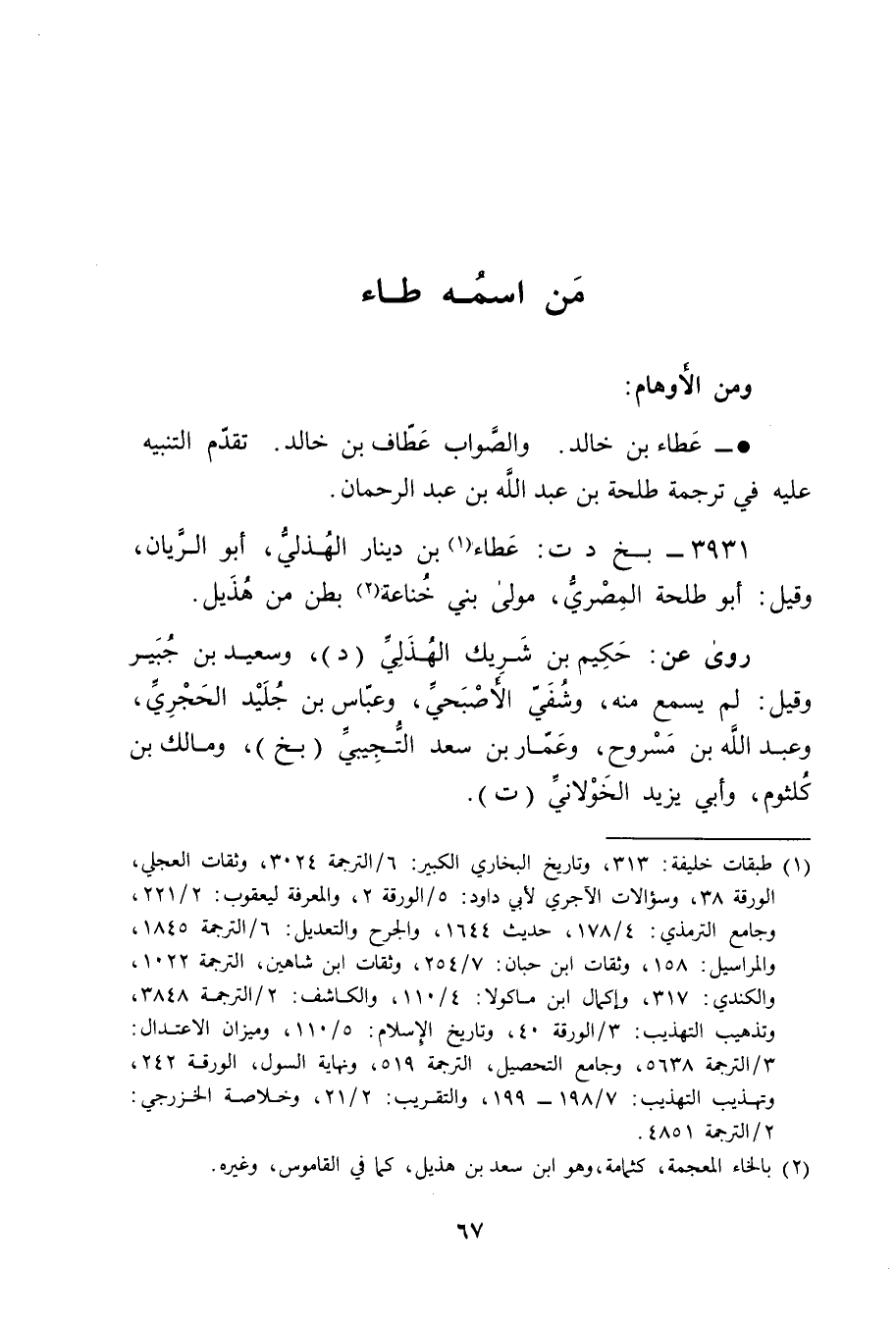 3931 - بخ د ت: عطاء بن دينار الهذلي (1) ، أبو الريان، وقيل: أبو طلحة المِصْرِي، مولى بني خناعة (2) بطن من هذيل.