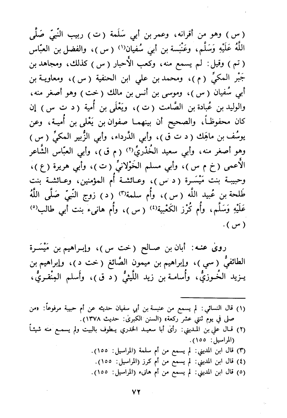 (2) قال علي بن المديني: رأى أبا سَعِيد الخُدْرِيّ يطوف بالبيت ولم يسمع منه شيئا (المراسيل: 155) .