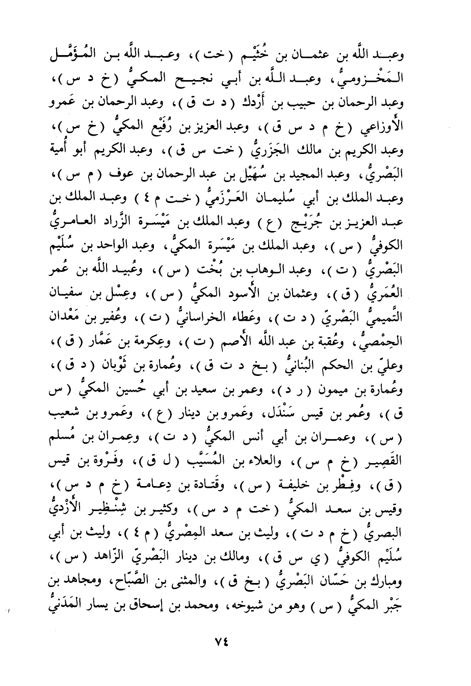 وعَبْد اللَّهِ بْن عثمان بْن خُثَيْم (خت) ، وعبد الله بْن المؤمل المخزومي، وعبد الله بْن أَبي نجيح المكي (خ د س) ، وعبد الرحمن بن حبيب بن أردك (د ت ق) ، وعبد الرحمن بْن عَمْرو الأَوزاعِيّ (خ م د س ق) ، وعبد العزيز بن رفيع المكي (خ س) ، وعبد الكريم بن مالك الجزري (خت س ق) ، وعبد الكريم أَبُو أمية البَصْرِيّ، وعبد المجيد بْن سهيل بْن عَبْد الرحمن بْن عوف (م س) ، وعبد الملك بْن أَبي سُلَيْمان العرزمي (خت م 4) وعبد الملك بْن