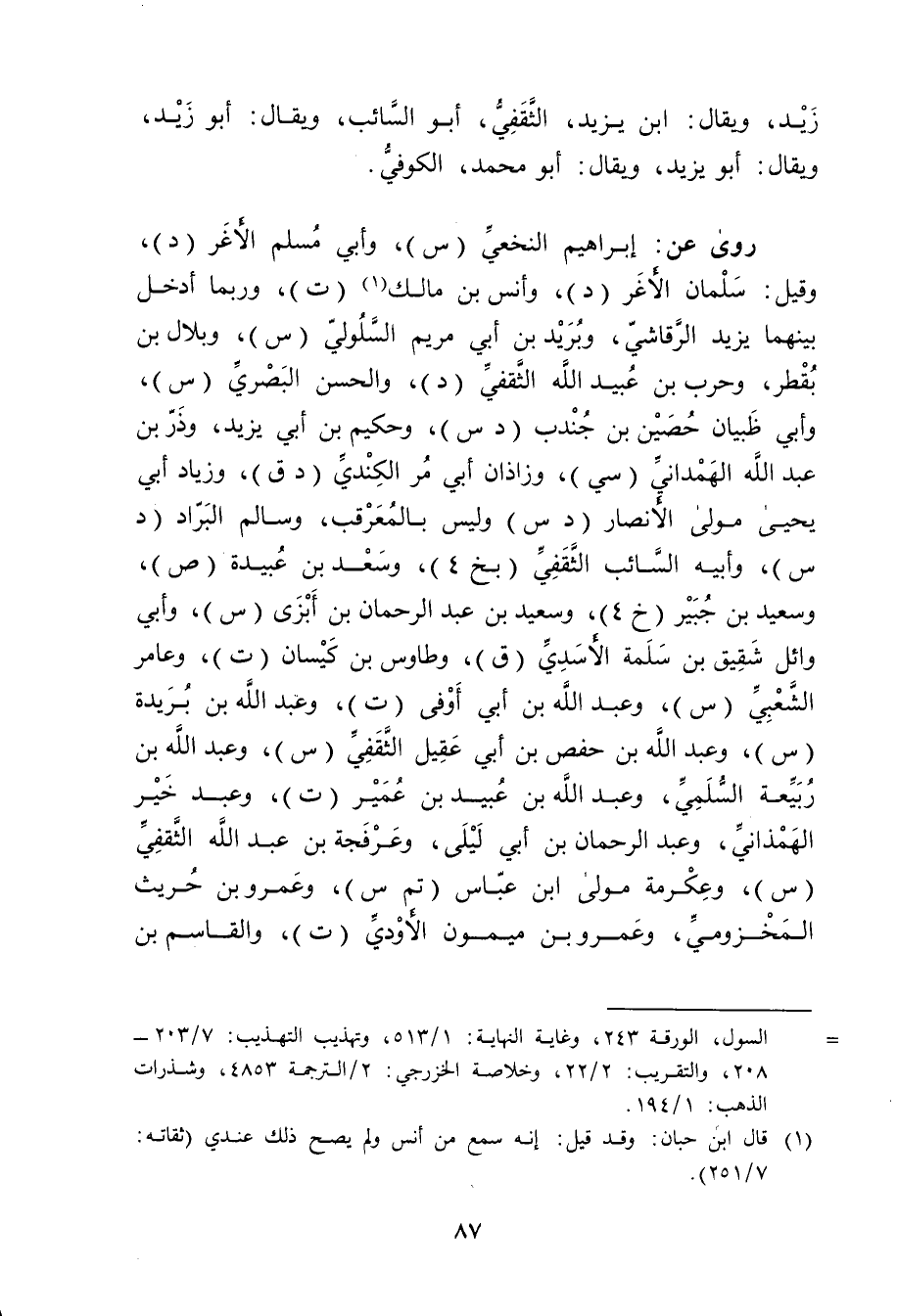 = السول، الورقة 243، وغاية النهاية: 1 / 513، وتهذيب التهذيب: 7 / 203 - 208، والتقريب: 2 / 22، وخلاصة الخزرجي: 2 / الترجمة 4853، وشذرات الذهب: 1 / 194.