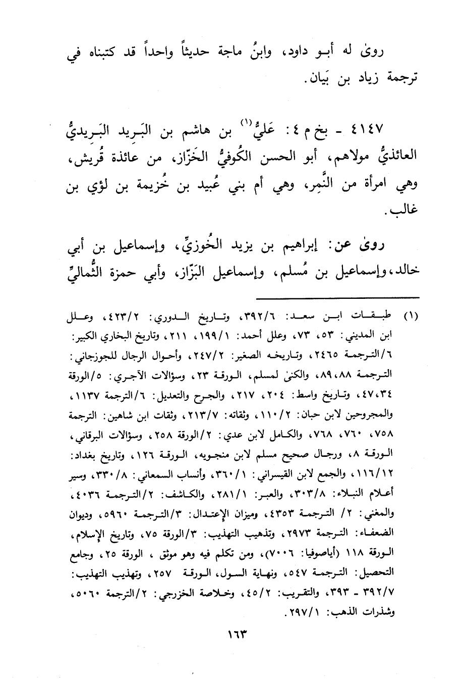 4147 - بخ م 4: علي بن هاشم بن البريد البريدي العائذي مولاهم (1) ، أَبُو الحسن الكوفي الخزاز، من عائذ قريش، وهي امرأة من النمر، وهي أم بْني عُبَيد بْن خزيمة بْن لؤي بْن غالب.