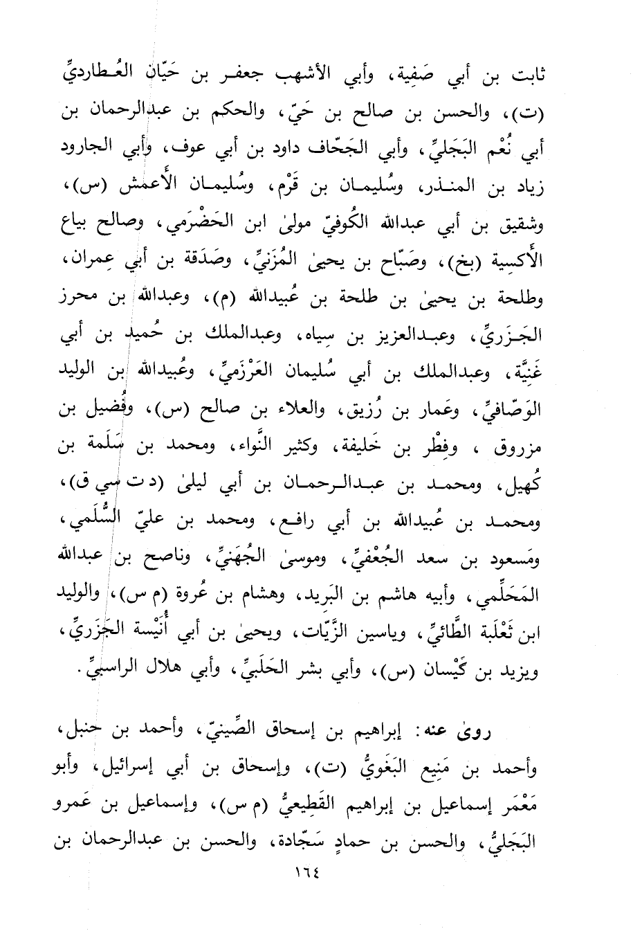 ثابت بْن أَبي صفية، وأبي الأشهب جعفر بْن حيان العطاردي (ت) ، والحسن بْن صالح بْن حي، والحكم بْن عبد الرحمن بْن أَبي نعم البجلي، وأبي الجحاف داود بْن أَبي عوف، وأبي الجارود زياد بْن المنذر، وسُلَيْمان بْن قرم، وسُلَيْمان الأعمش (س) ، وشقيق بْن أَبي عَبد الله الكوفي مولى ابن الحضرمي، وصالح بياع الأكسية (بخ) ، وصباح بْن يحيى المزني، وصدقة بْن أَبي عِمْران، وطلحة بْن يحيى بْن طلحة بْن عُبَيد الله (م) ، وعبد اللَّه بْن محرز الجزري، وعبد العزيز بْن سياه، وعبد الملك بْن حميد بْن أَبي غنية، وعبد الملك بْن أَبي سُلَيْمان العرزمي، وعُبَيد اللَّه بْن الْوَلِيد الوصافي، وعمار بْن رزيق، والعلاء بْن صالح (س) ، وفضيل بْن مزروق، وفطر بْن خليفة، وكثير النواء، ومحمد بْن سلمة بْن كهيل، ومحمد بْن عَبْد الرَّحْمَنِ بْن أَبي ليلى (د ت سي ق) ، ومحمد بْن عُبَيد اللَّهِ بْن أَبي رافع، ومحمد بْن علي السلمي، ومسعود بْن سعد الجعفي، وموسى الجهني، وناصح بْن عَبد اللَّه
