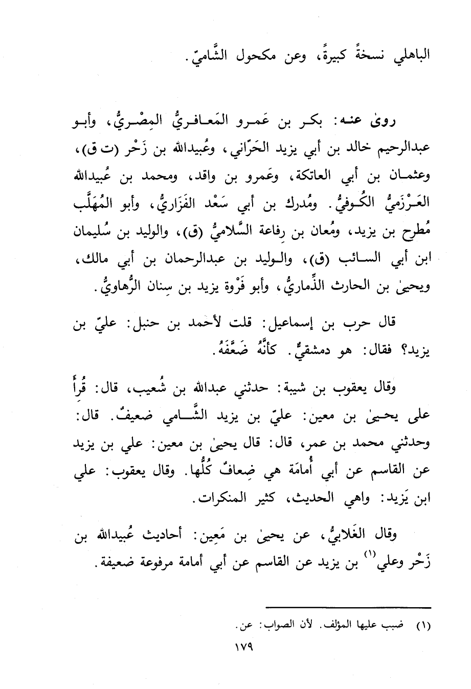 الباهلي نسخة كبيرة، وعن مكحول الشامي.