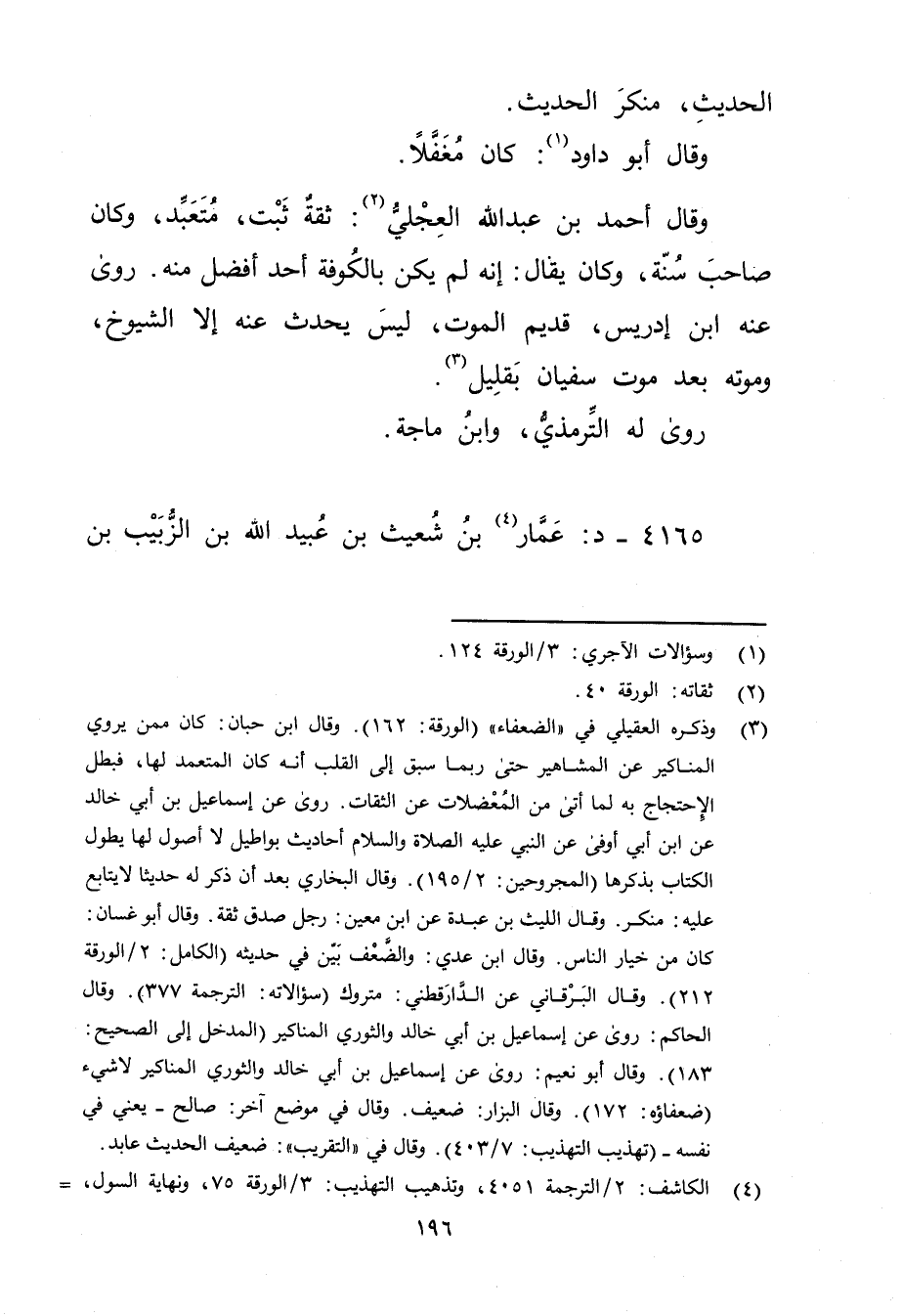 وَقَال أحمد بْن عَبد اللَّهِ العجلي (2) : ثقة ثبت، متعبد، وكان صاحب سنة، وكان يقال: إنه لم يكن بالكوفة أحد أفضل مِنْهُ.