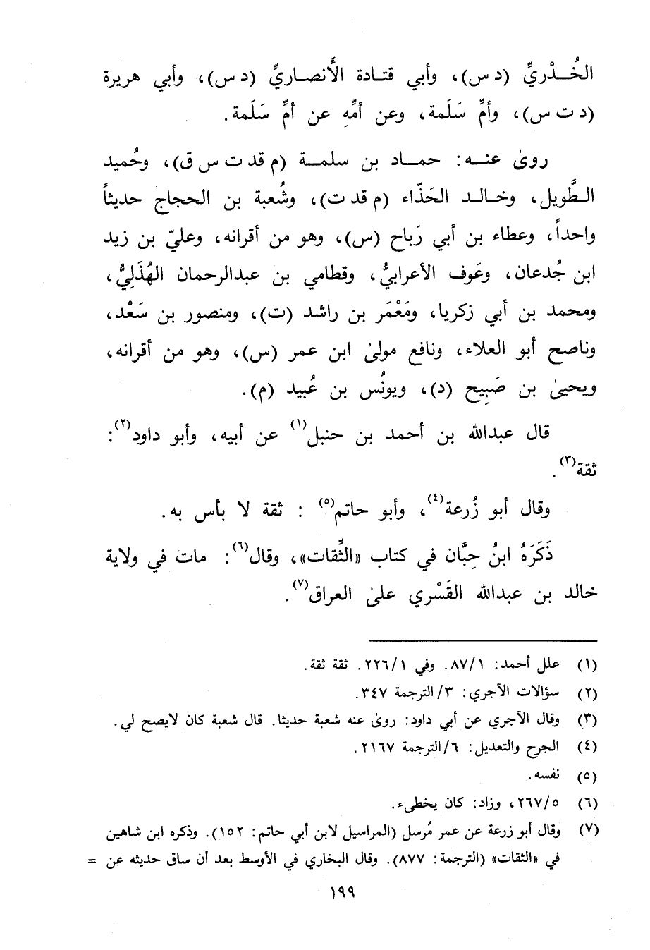 ذكره ابنُ حِبَّان في كتاب "الثقات"، وَقَال (6) : مات في ولاية خالد بن عَبد الله القسري على العراق (7) .