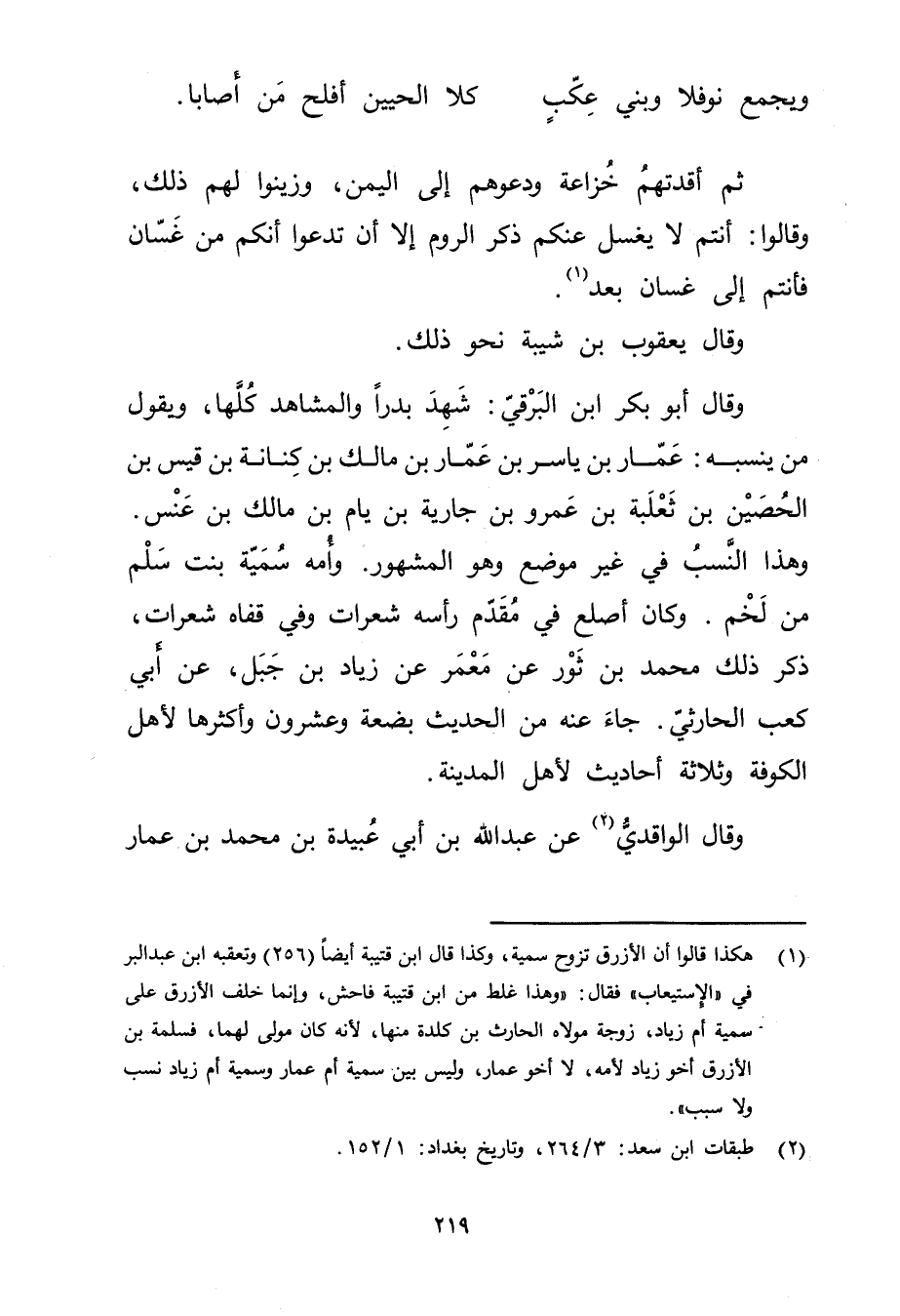 (2) طبقات ابن سعد: 3 / 264، وتاريخ بغداد: 1 / 152.