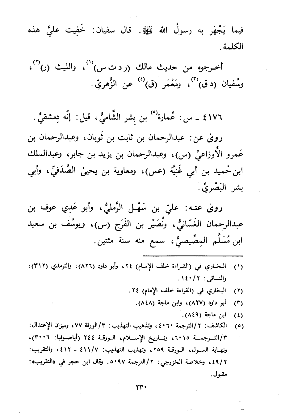 4176 - س: عمارة بن بشر الشامي (5) ، قِيلَ: إنه دمشقي.