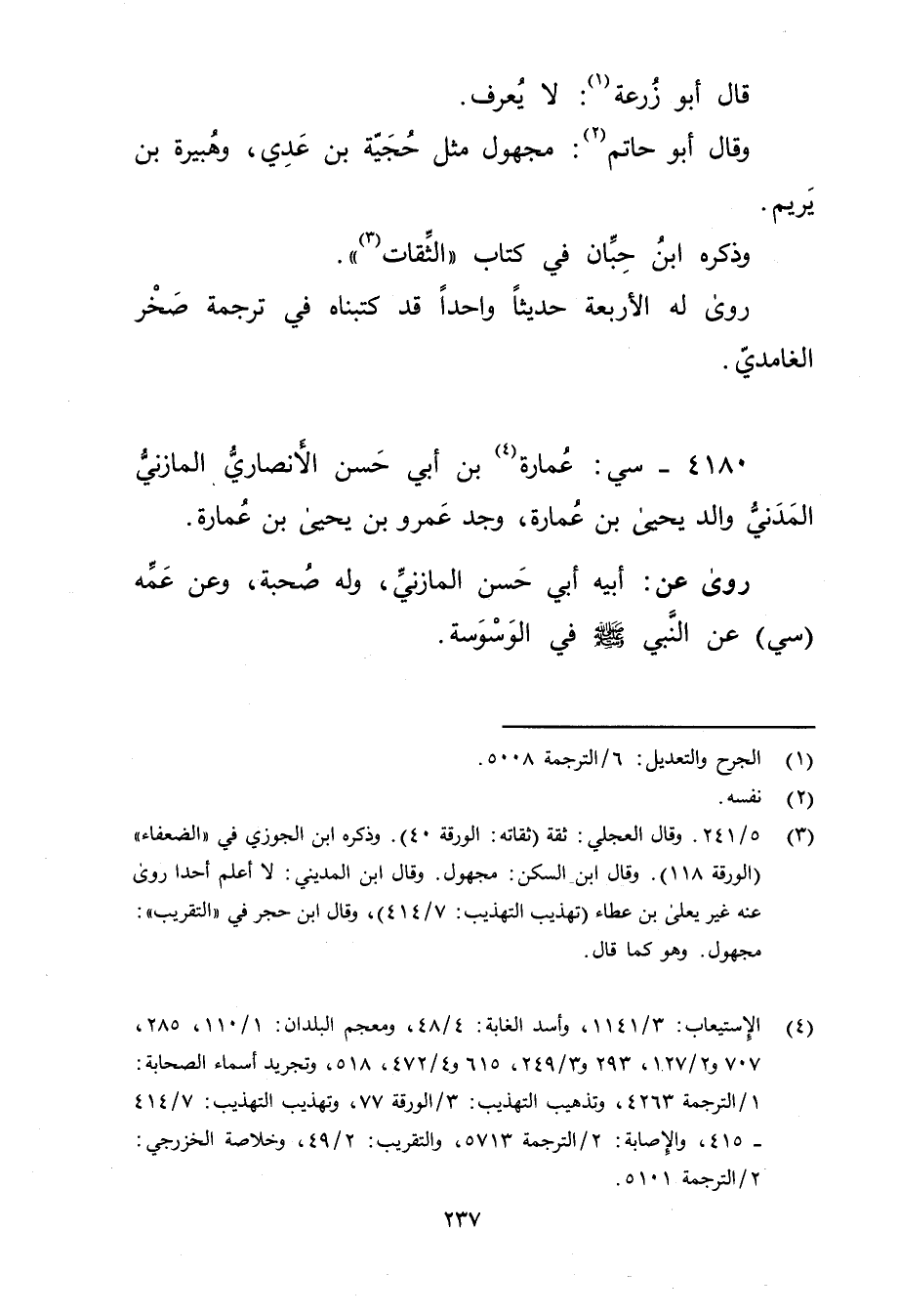 4180 - سي: عمارة بن أَبي حسن الأَنْصارِيّ المازني المدني (4) والد يحيى بْن عمارة، وجد عَمْرو بْن يحيى بْن عمارة.