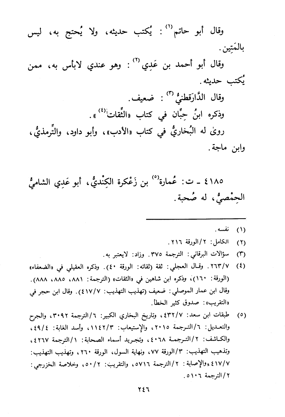 4185 - ت: عمارة بن زعكرة الكندي (5) ، أَبُو عدي الشامي الحمصي، له صحبة.